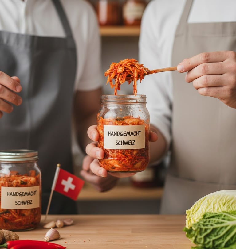 Schweizer Cross-over: Probiere Kimchi mal zu einem kräftigen Alpkäse oder im Sandwich – die Säure passt perfekt!